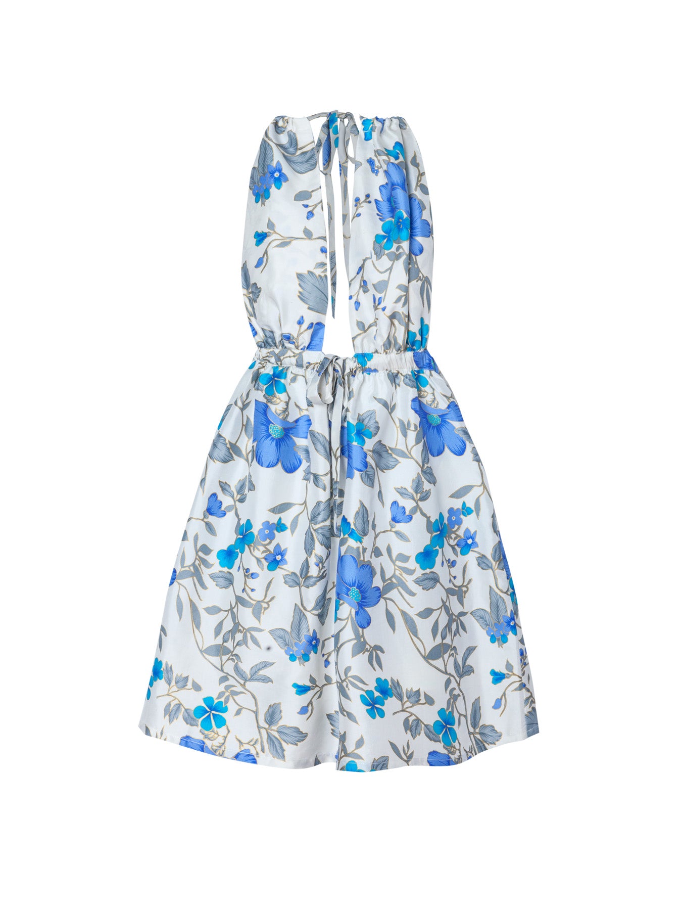 Pheme Halter Silk Mini Dress - Blue Floral | Limited-Edition Thai Silk Made in Bali